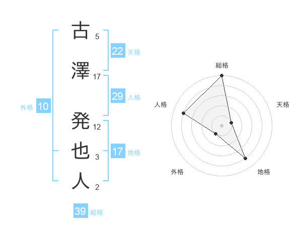 古澤 発也人さんの総格は39画の5点!