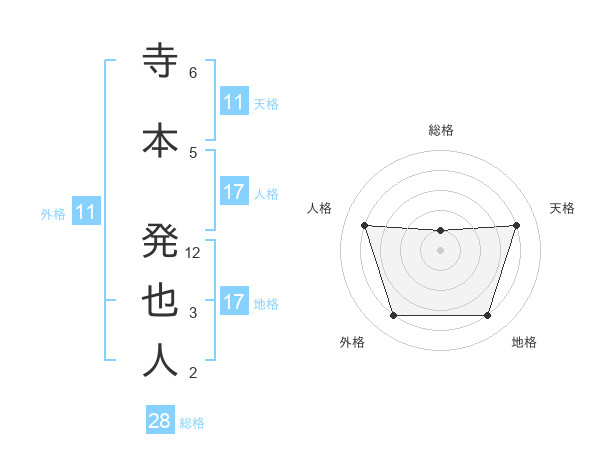 寺本 発也人さんの外格は11画の4点!