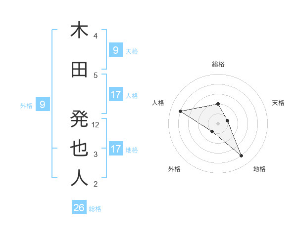 木田 発也人さんの地格は17画の4点!