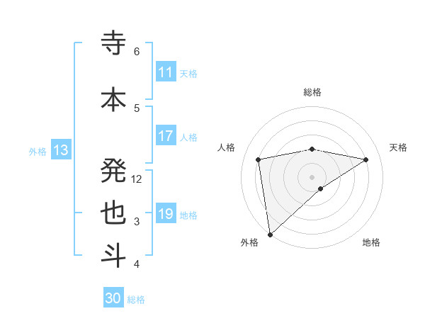 寺本 発也斗さんの外格は13画の5点!
