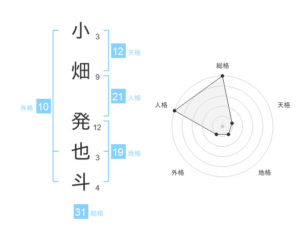 小畑 発也斗さんを姓名の画数から五運を鑑定