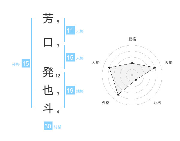 芳口 発也斗さんを姓名の画数から五運を鑑定