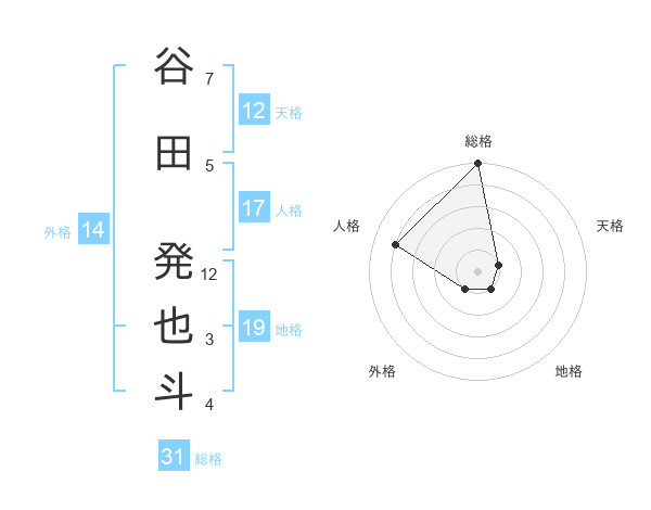 谷田 発也斗さんの総格は31画の5点!