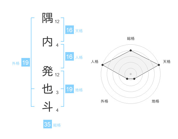 隅内 発也斗さんを姓名の画数から五運を鑑定