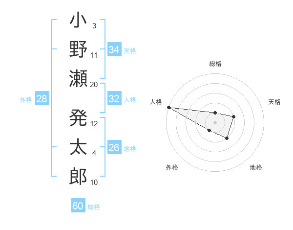 小野瀬 発太郎さんの名前の鑑定結果は!