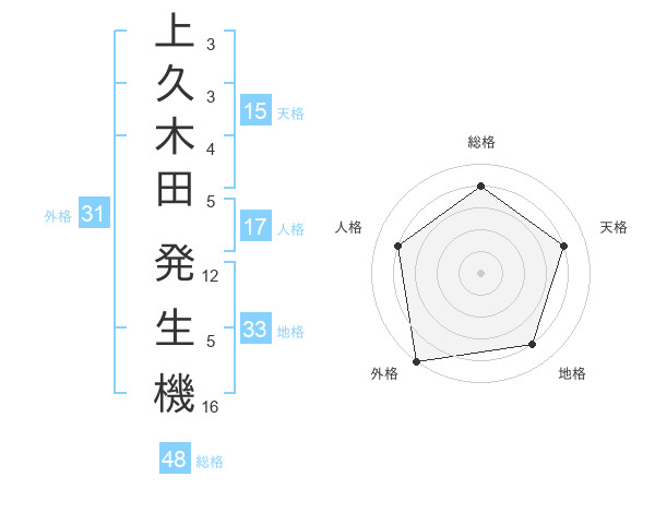 上久木田 発生機さんを姓名の画数から五運を鑑定