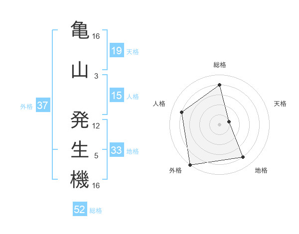 亀山 発生機さんの総格は52画の4点!