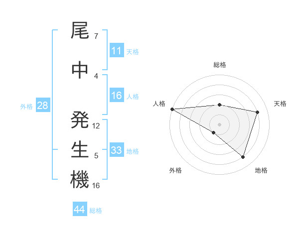 尾中 発生機さんを姓名の画数から五運を鑑定