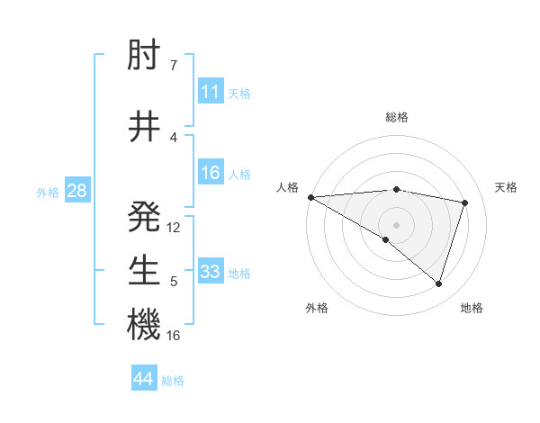 肘井 発生機さんの総格は44画の2点!
