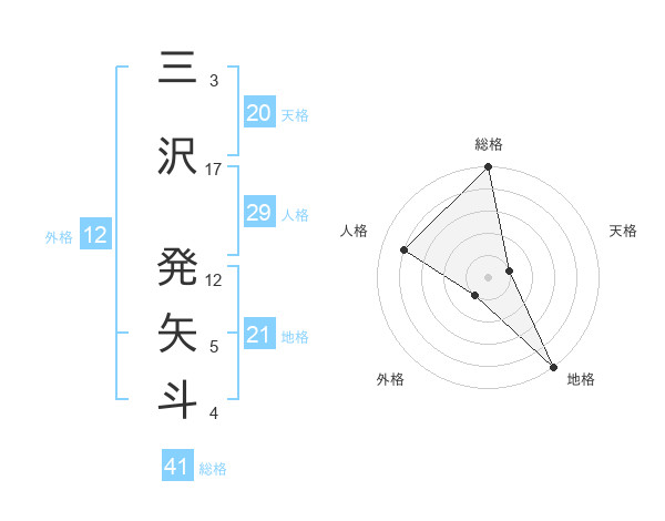 三沢 発矢斗さんを姓名の画数から五運を鑑定