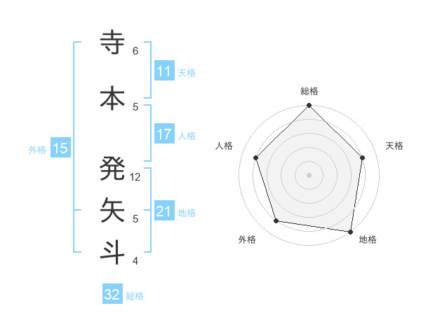 寺本 発矢斗さんを姓名の画数から五運を鑑定