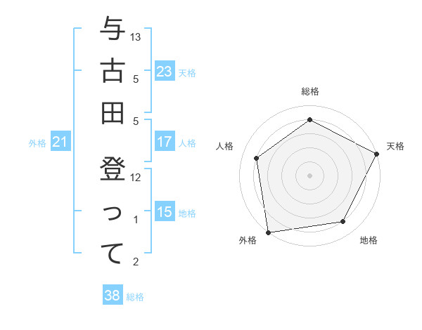 与古田 登ってさんの天格は23画の5点!