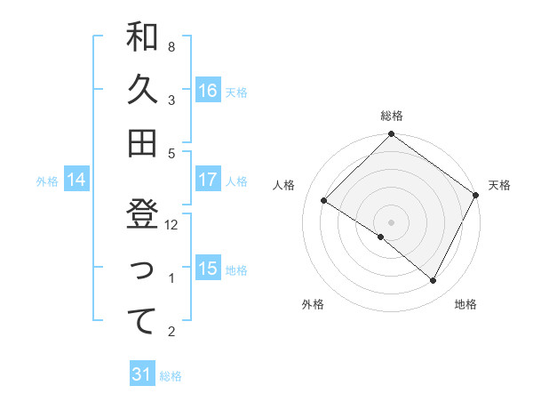 和久田 登ってさんを姓名の画数から五運を鑑定