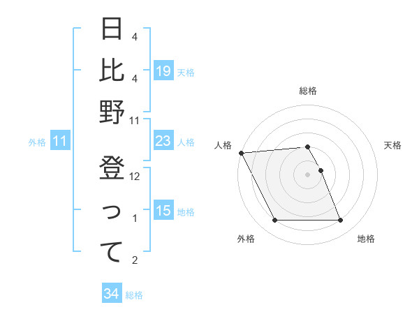 日比野 登ってさんを姓名の画数から五運を鑑定