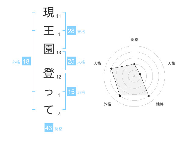 現王園 登ってさんの総格は43画の2点!