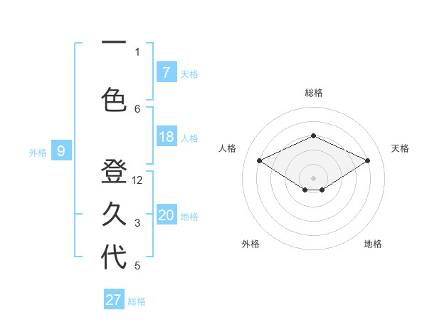 一色 登久代さんの総格は27画の3点!