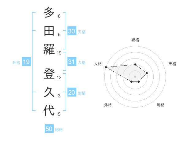 多田羅 登久代さんを姓名の画数から五運を鑑定