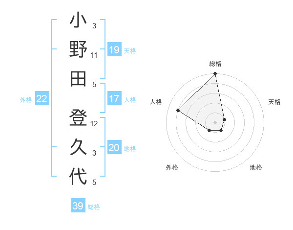 小野田 登久代さんを姓名の画数から五運を鑑定
