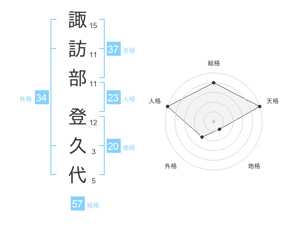 諏訪部 登久代さんの天格は37画の5点!