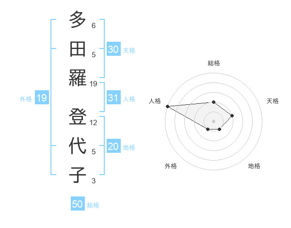 多田羅 登代子さんを姓名の画数から五運を鑑定