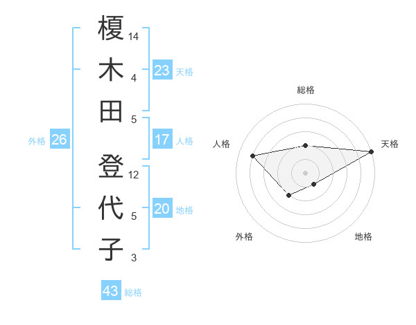 榎木田 登代子さんを姓名の画数から五運を鑑定