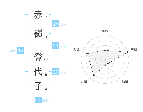 赤嶺 登代子さんの天格は24画の5点!