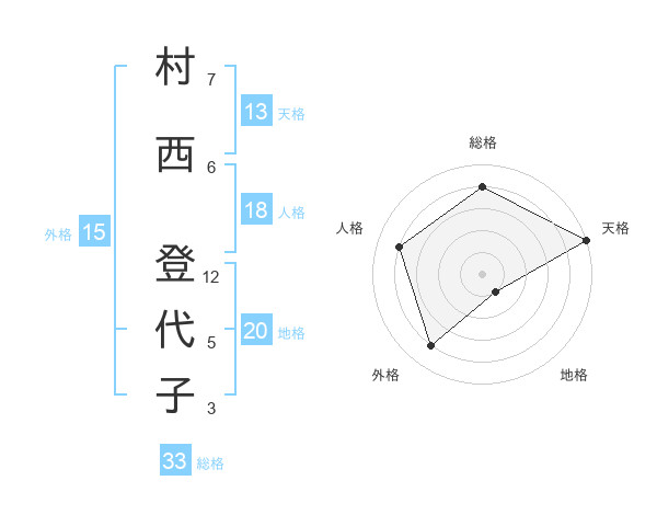 村西 登代子さんの天格は13画の5点