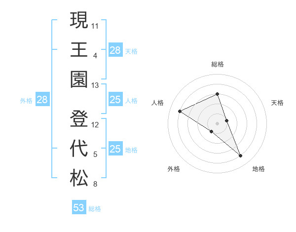 現王園 登代松さんの総格は53画の3点!