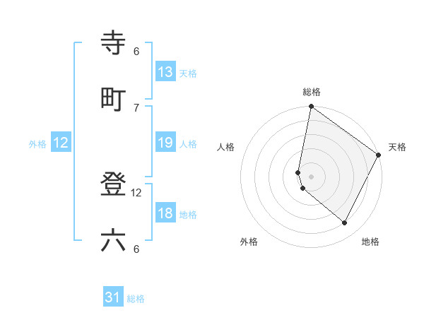 寺町 登六さんの総格は31画の5点!