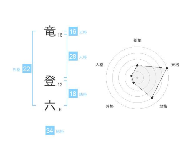 竜 登六さんの総格は34画の2点!