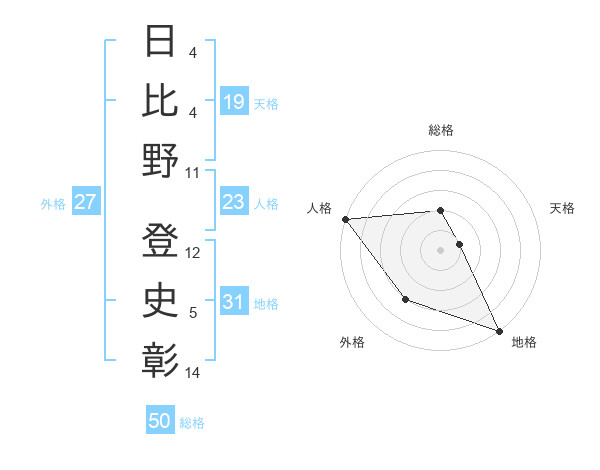 日比野 登史彰さんを姓名の画数から五運を鑑定