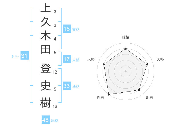 上久木田 登史樹さんを姓名の画数から五運を鑑定