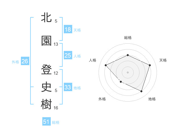 北園 登史樹さんを姓名の画数から五運を鑑定