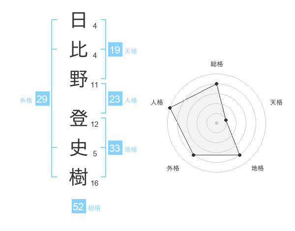 日比野 登史樹さんを姓名の画数から五運を鑑定