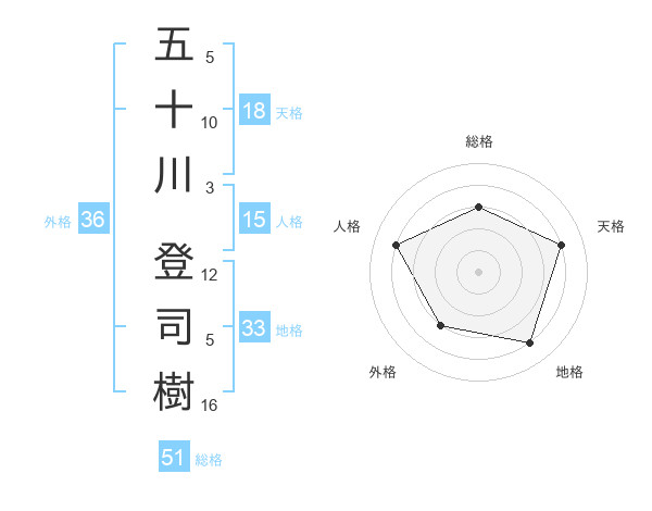 五十川 登司樹さんを姓名の画数から五運を鑑定