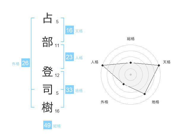 占部 登司樹さんを姓名の画数から五運を鑑定