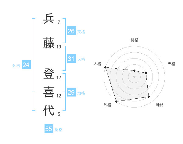 兵藤 登喜代さんの外格は24画の5点!