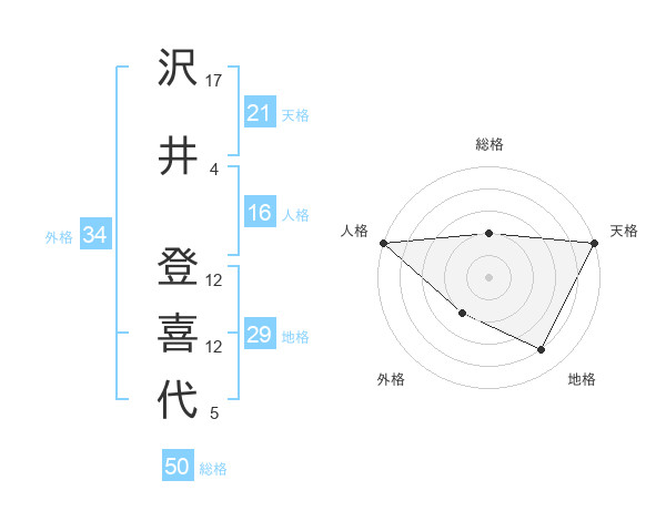 沢井 登喜代さんを姓名の画数から五運を鑑定