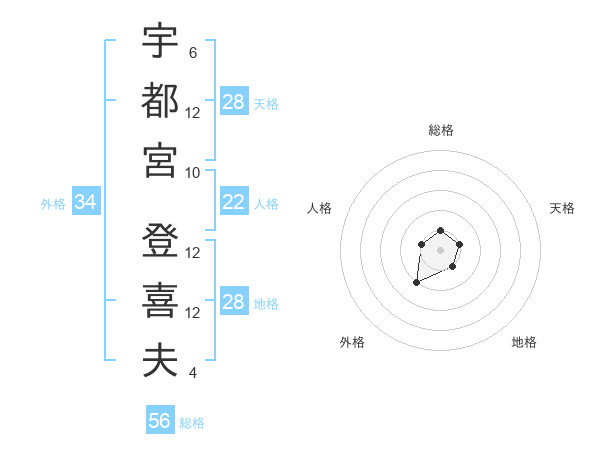 宇都宮 登喜夫さんの地格は28画の1点!