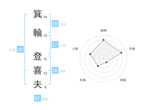 箕輪 登喜夫さんの総格は57画の4点!
