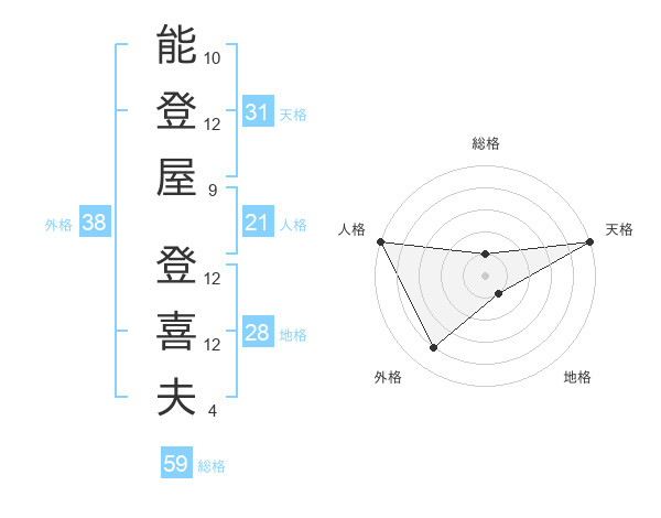 能登屋 登喜夫さんを姓名の画数から五運を鑑定