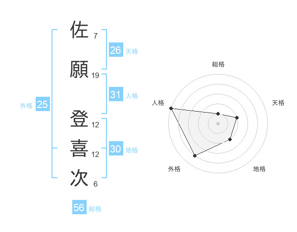 佐願 登喜次さんを姓名の画数から五運を鑑定