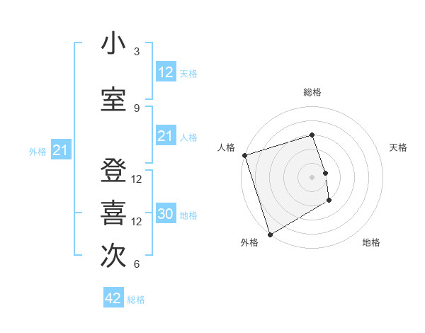 小室 登喜次さんを姓名の画数から五運を鑑定