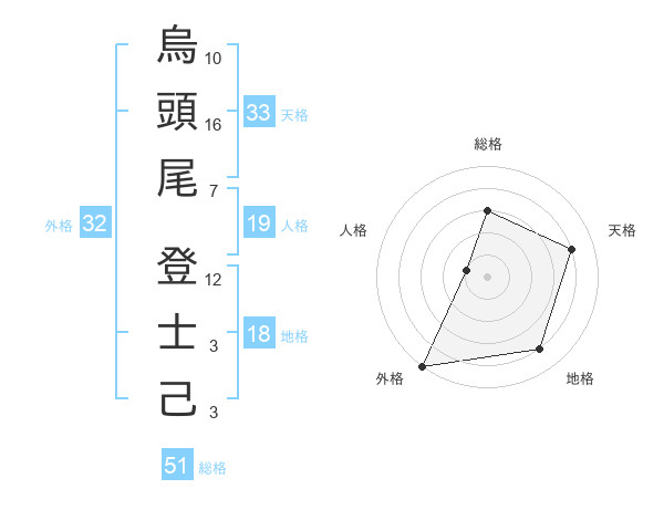烏頭尾 登士己さんを姓名の画数から五運を鑑定
