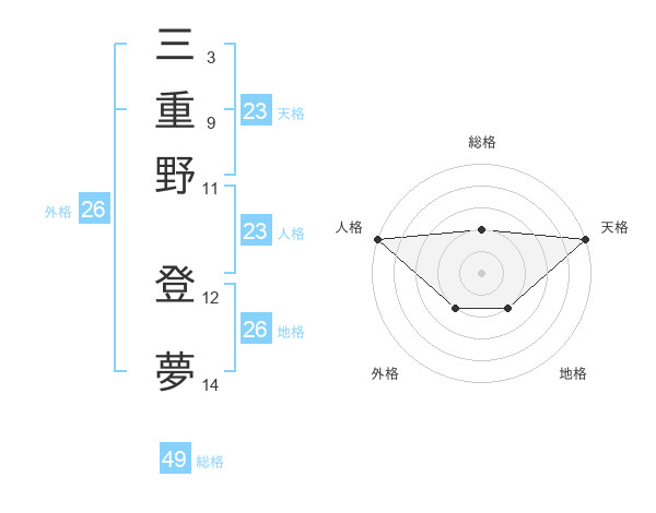 三重野 登夢さんを姓名の画数から五運を鑑定