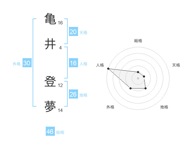 亀井 登夢さんを姓名の画数から五運を鑑定