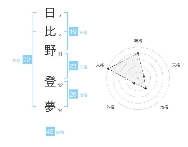日比野 登夢さんを姓名の画数から五運を鑑定