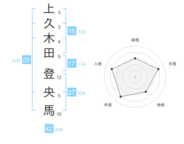 上久木田 登央馬さんを姓名の画数から五運を鑑定