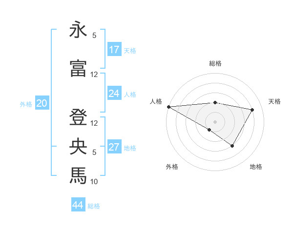 永富 登央馬さんを姓名の画数から五運を鑑定