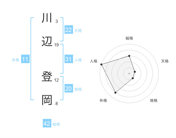 川辺 登岡さんの総格は42画の3点!